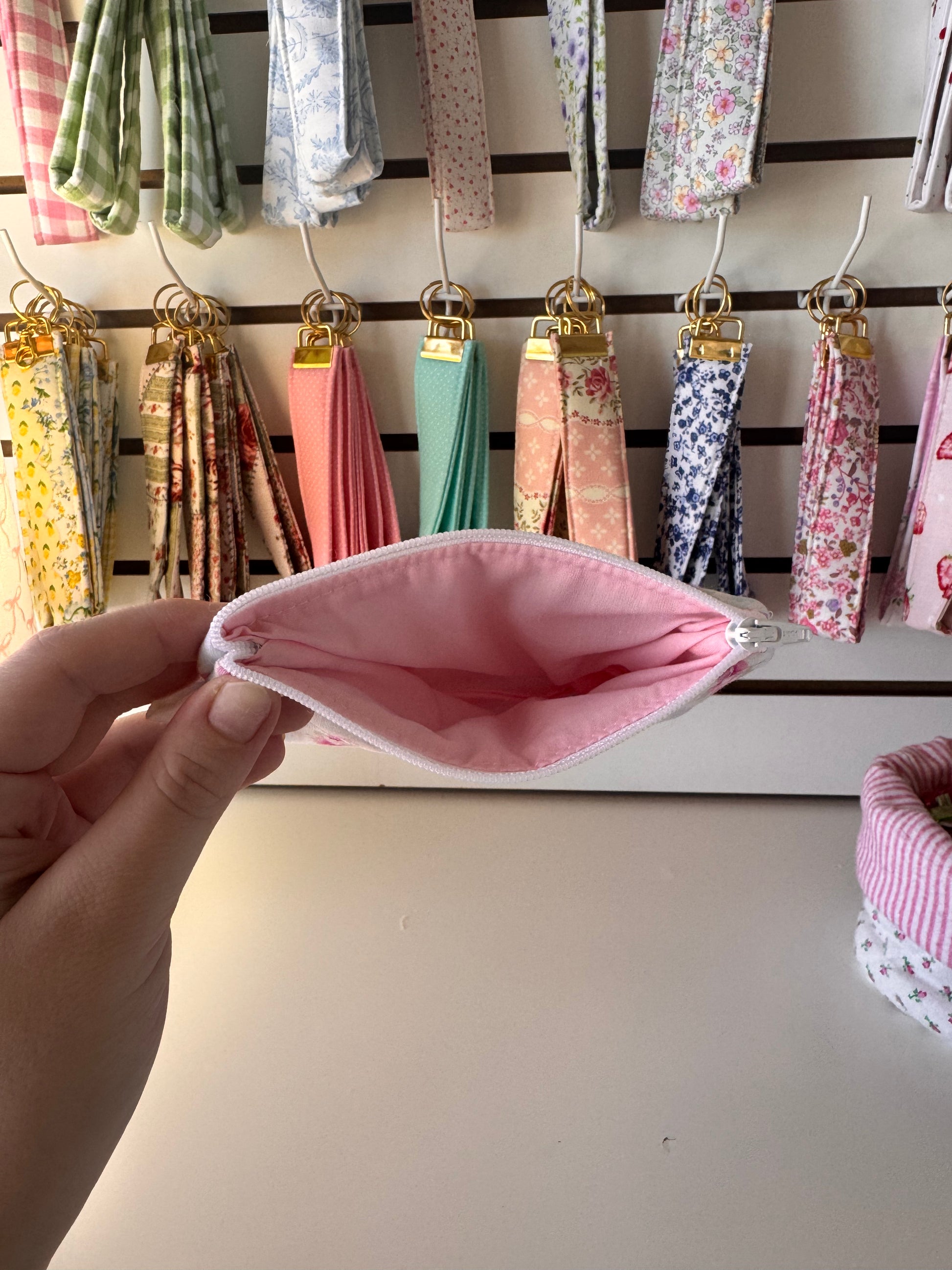 These mini wallets are perfect for holding anything from cards to cosmetics! These mini wallets are perfect for on the go and can be connected to a wristlet or keychain for easy convenience. These wallets are great for on the go, school, running errands, or to keep everything organized and handy any time!
