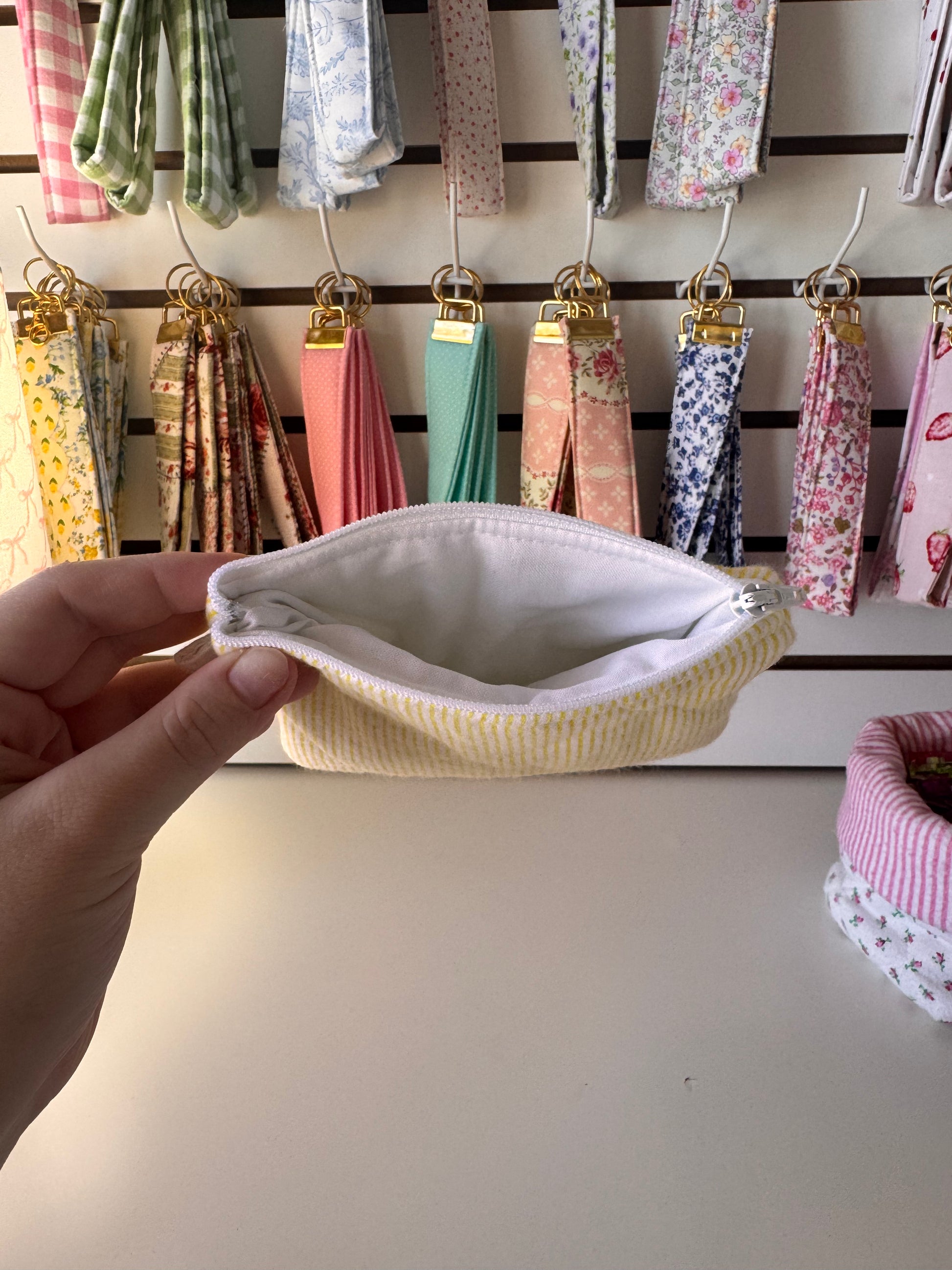 These mini wallets are perfect for holding anything from cards to cosmetics! These mini wallets are perfect for on the go and can be connected to a wristlet or keychain for easy convenience. These wallets are great for on the go, school, running errands, or to keep everything organized and handy any time!